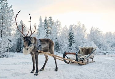 Authentic, traditional reindeer farm visit with 3km ride through snowy forest & Lappish-style lunch (Halal/vegan options available).